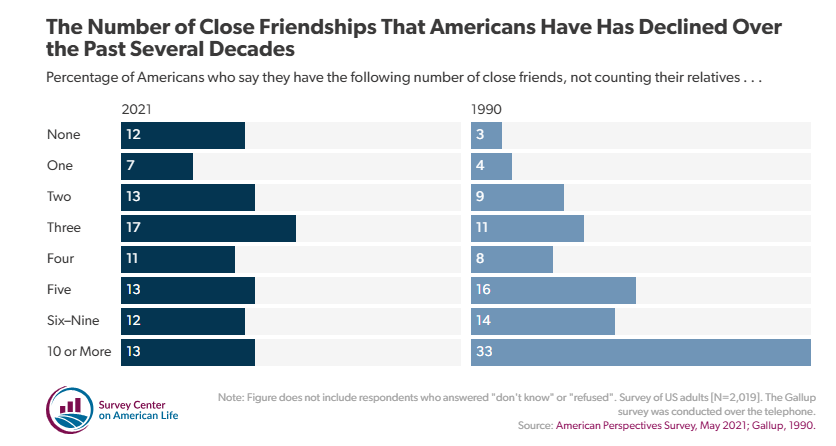 - 12% of Americans (more than 1 in 10 people you see everyday) have zero friends.